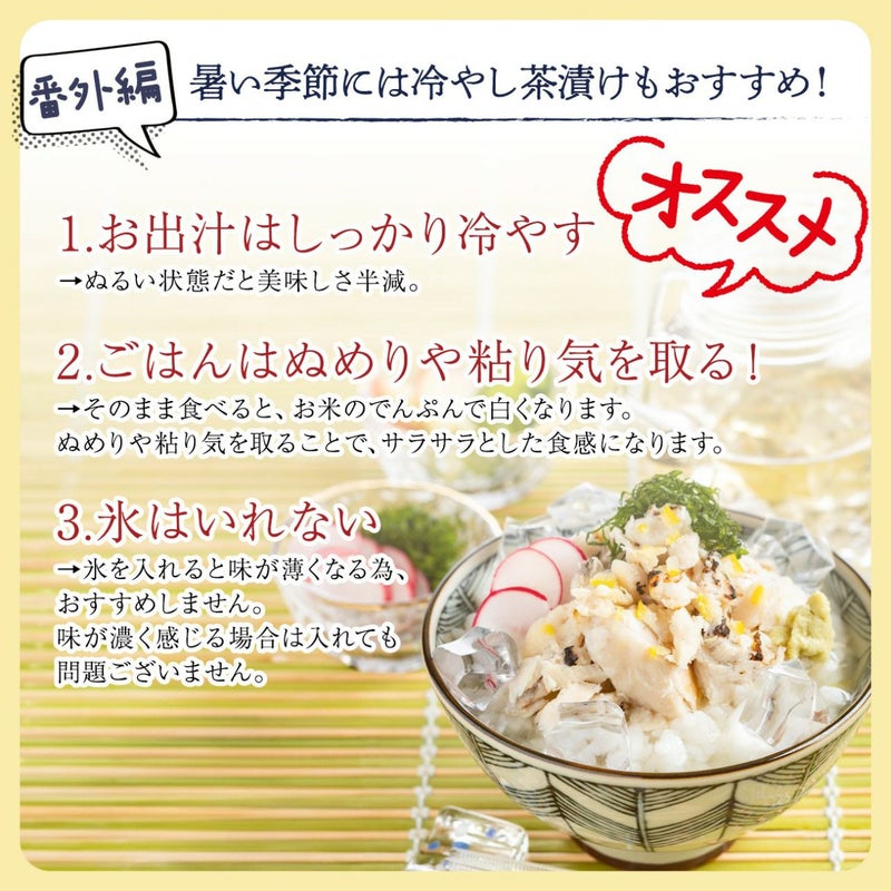 | ・加熱してお召し上がりください。(解凍のみでも、冷やし茶漬けとしてお召し上がり頂けます。) | |