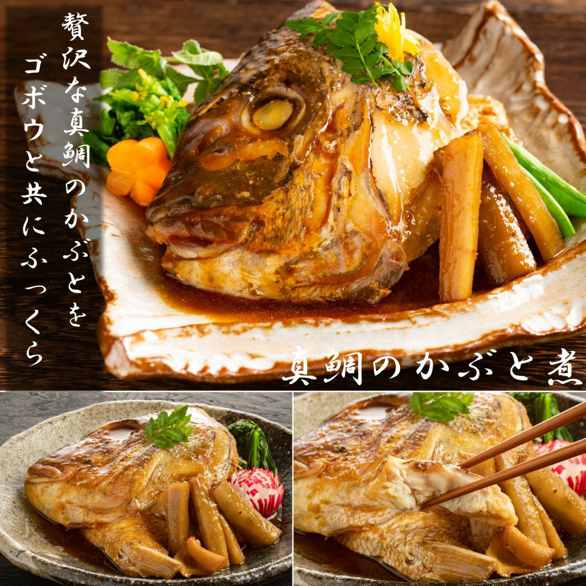 国内の海で育まれた鯛は身も締まり、脂乗りも良く、まさに魚の王様です。真鯛のかぶとを贅沢に使用し、丁寧に下処理をして、ごぼうと一緒にふっくら炊き上げました。骨から出るうま味が、味わい深い一品です。