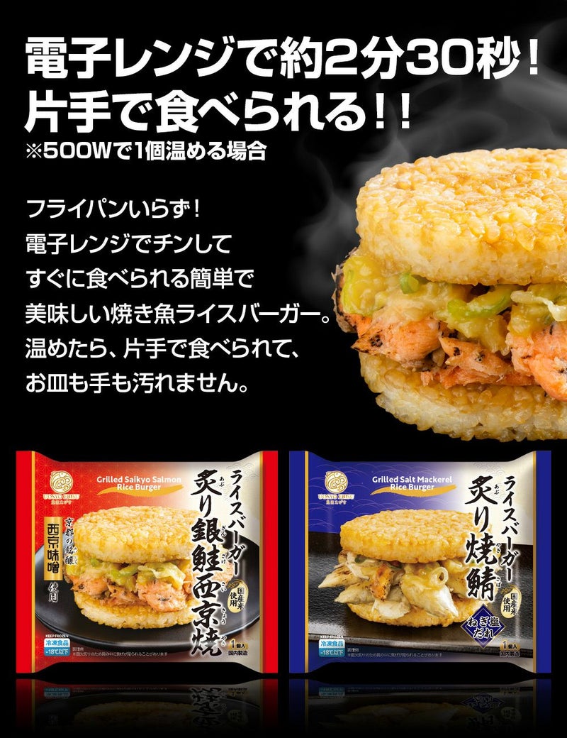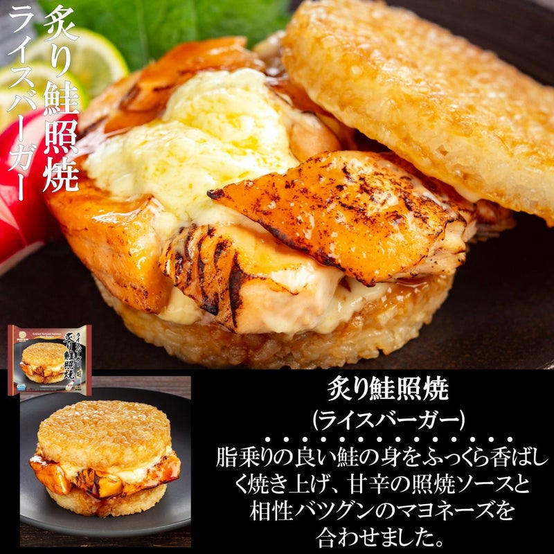 ・ライスバーガー 炙り銀鮭西京焼 1個 ・ライスバーガー 炙り焼鯖塩だれ 1個 ・ライスバーガー 海老チリ 1個 ・ライスバーガー 炙り鮭照焼 1個 ・鯖の塩焼き 1個 ・銀鮭塩焼き 1個 ・鰆の塩焼き 1個 7種合計7個 | |