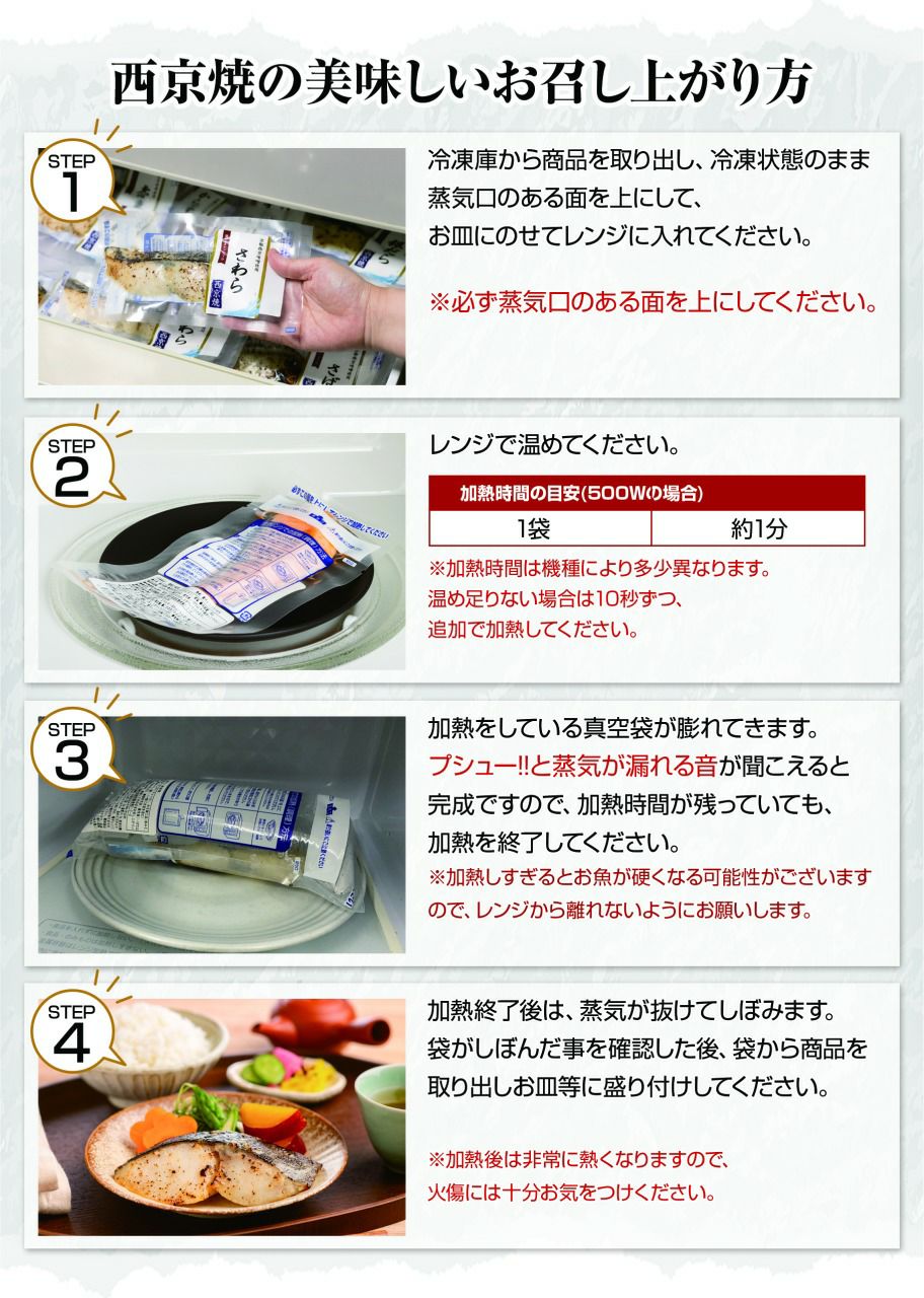 パッケージそのまま冷凍状態から電子レンジで約1分!焼き上げ済みだから「失敗しない」西京焼