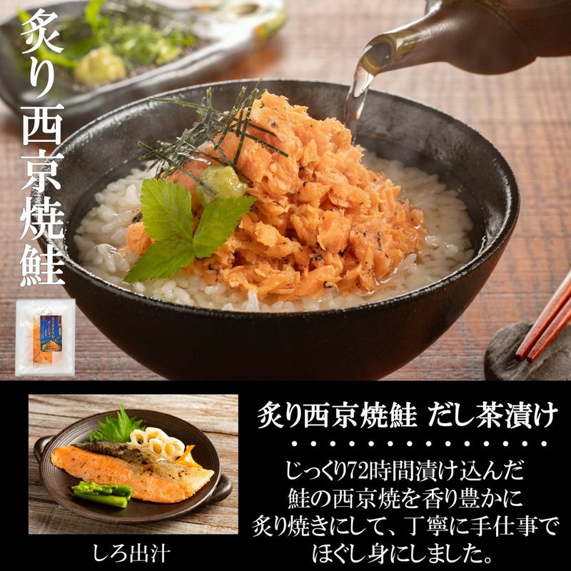 真鯛・西京焼鮭・鮭塩糀焼・鰆(さわら)塩糀焼 冷やしだし茶漬け