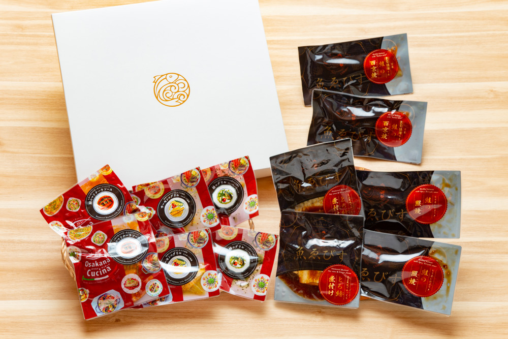 魚ゑびす、Osakana Cucina共にオシャレなパッケージで、質の良いギフト箱でお届けします。見た目も華やかで、開けたその場で嬉しくなる【魚匠えびす】のギフトです。