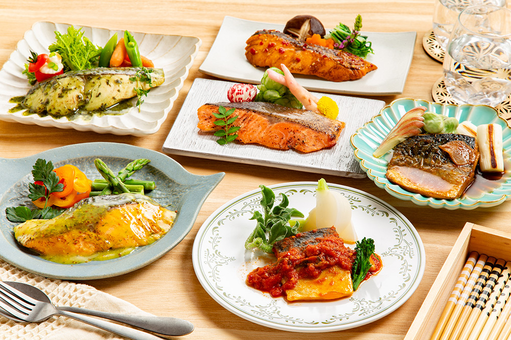 鯖、鮭、真鯛、ブリなど様々な魚種がまるで割烹料亭のような味わいに。